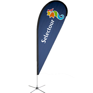 Outil de communication visuelle à grande échelle, l’oriflamme vient renforcer la visibilité à 360° qu’apportent déjà l’enseigne et la vitrophanie. En effet, tous les produits de communication visuelle sont complémentaires. L’oriflamme va apporter un impact visuel très fort à l’extérieur ou à l’intérieur du magasin. Autrement connu sous le nom de Beach Flag, cet outil commercial apportera une réelle plus-value aux agences de voyage. Les oriflammes incitent au voyage grâce à leur grand drapeau sur mât qui bouge au grès du vent. De plus, c’est un outil ultra résistant aux intempéries et notamment des vents allant de 20 à 30 km/h. Avec son corps en fibre de verre, son embase et ses différentes tailles (2m, 3m, 4m ou 5m), l’oriflamme sera visible de loin par les passants, du coup vos prospects pourront attirer regards et curiosité grâce à elle. C’est un outil idéal pour une agence de voyage.