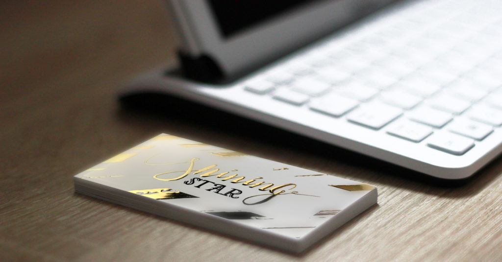 Il fait également parti des possibilités de personnalisation. Il consiste à pousser le papier de la carte de visite pour faire apparaître, en relief, un dessin ou un texte. La face gaufrée sera galbée et l’autre contiendra une défonce. Pour le coup, la carte de visite aura un toucher intéressant sans vernis sélectif. Une façon de faire ressortir les choses importantes. Justement, pour ces choses importantes, nous proposons également une dorure à chaud.