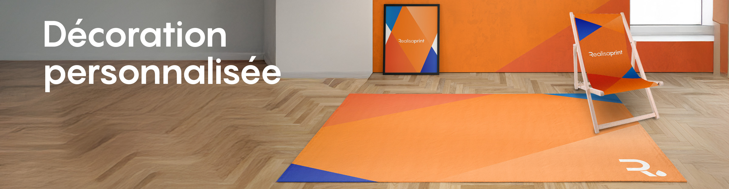Dans cette catégorie, divers supports décoratifs vous sont proposés. Dans un premier temps, nous proposons la décoration murale : adhésif mural, affiche / poster, lettrage adhésif, papier peint, sticker, tissu mural et toile de peintre sont au rendez-vous. Nécessaire à un espace de vie agréable, l'aspect des murs est indispensable pour un espace agréable et sain. C'est en effet, le premier élément que l'on voit en entrant dans un bureau. Dans un second temps, et qui est également le second coup d'œil d'un prospect lorsqu'il arrive dans un bureau, il est nécessaire d'avoir un sol propre. Pour ce faire, nous proposons la décoration sol qui comprend l'adhésif sol, la moquette publicitaire et le tapis d'accueil. Idéal pour ajouter une petite touche colorée, ces supports attireront l'œil et sauront véhiculer une image professionnelle et dynamique de l'entreprise. Nous ne pouvons pas parler de décoration sans parler de l'essentiel de ce secteur : les tableaux. Dans une catégorie entièrement dédiée, vous retrouverez de nombreux supports permettant de créer des tableaux, plus beaux les uns que les autres. Parmi ceux-ci, nous proposons le canvas, le tableau aluminium argent brossé, le tableau aluminium blanc, le tableau carton alvéolaire, le tableau carton plume, le tableau PVC expansé et le tableau transparent (Plexiglas®). Enfin, d'autres outils peuvent servir à instaurer une ambiance au sein des bureaux d'une entreprise : la chaise longue, la nappe publicitaire et les lettres 3D. Ceux-ci, en choisissant un visuel ou un écrit attrayant, peuvent devenir de véritables vecteurs d'ambiance. En fonction du visuel choisi, votre client peut offrir une ambiance cool, dynamique, cosy, moderne, rétro et bien d'autres styles, à son équipe.